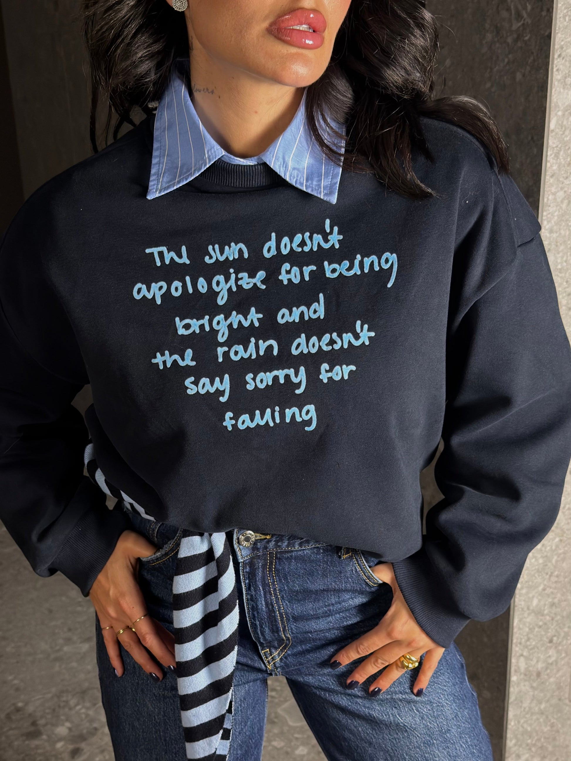 Felpa con scritta dietro e con sciarpa removibile .